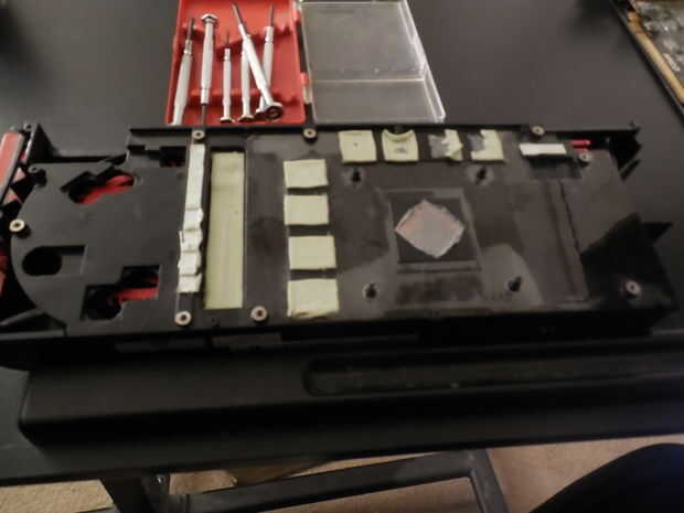 Ahora puede poner el ventilador en la carcasa delantera, vuelva a colocar la placa con las placas de enfriamiento Asegúrese de que usted no forjar para volver a poner el tornillo en donde está la segunda almohadilla blanco