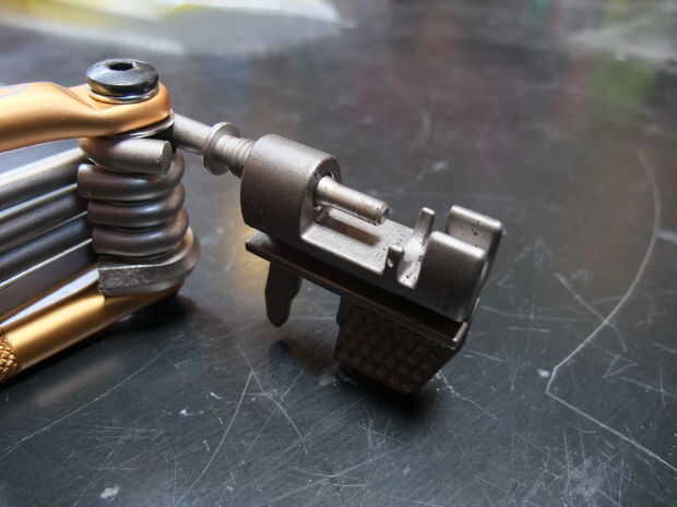 En casa en su garaje es posible reparar una cadena con un martillo y unos alicates, pero una herramienta de la cadena es más fácil y realmente la única opción en la calle.