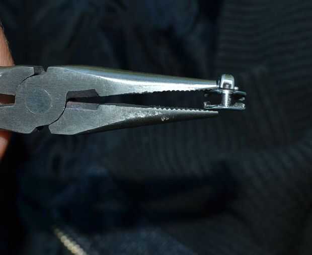 Pentecostés los alicates cerrar los dos lados del tirón de la cremallera, intentar que se vea como la forma original otra vez.