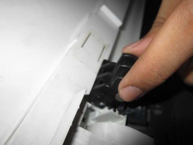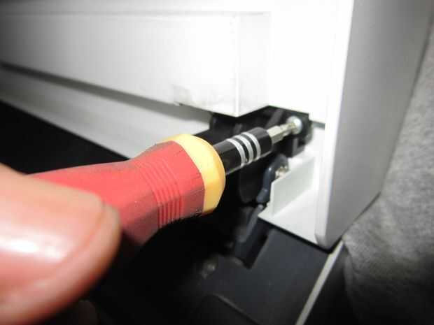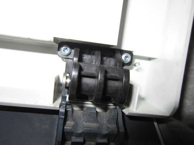 Hay una cubierta de plástico donde dentro están los dos tornillos de la parte superior de la bisagra, y dos tornillos en el otro lado de la puerta.