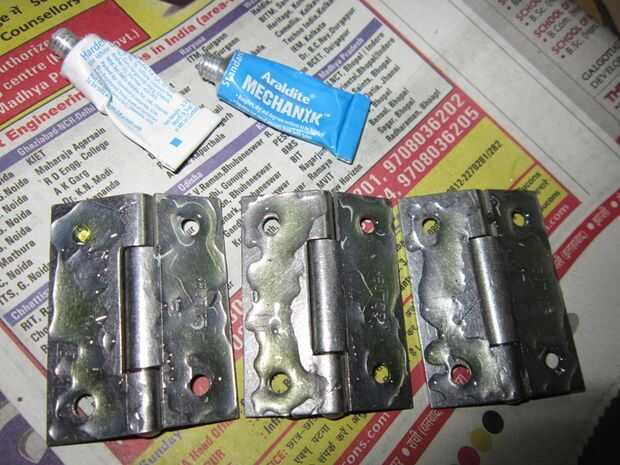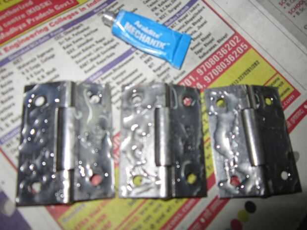 En cuanto se seca, poner masilla de epoxy en las secciones de las bisagras desde dentro para hacer la espera más fuerte.