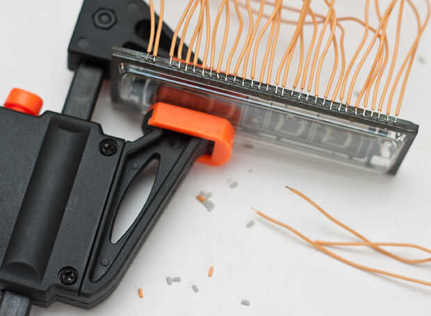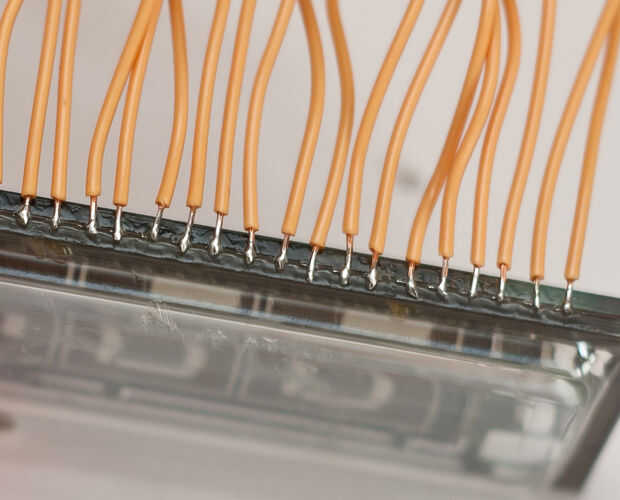 Aplicar algún estaño en el extremo de los cables, luego uno por uno a los pines de soldadura. Otra vez, ser muy rápido y no se mueven los cables soldados por ahora.