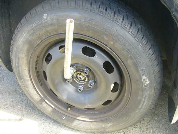 En este momento, utilice su llave de estirón para apretar todas las zapatas en una estrella en forma de patrón de entrecruzamiento. De esta manera que la rueda aprieta uniformemente. Ver notas de imagen para la orden...