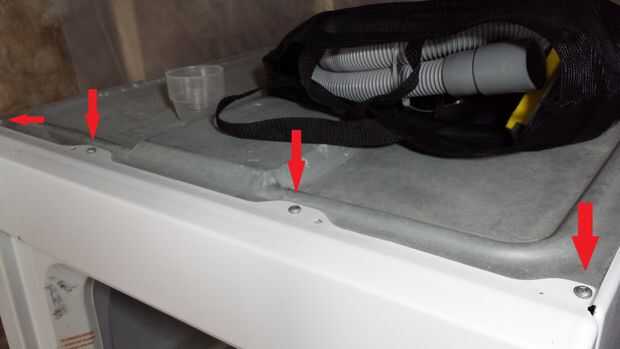 Alinee los tornillos en la parte superior del panel y acaba de empezar un par de ellos. Desea el panel celebrado en el lugar pero todavía movible para asentar correctamente la parte delantera del tambor. Una vez bien colocado, acabado de poner todos los tornillos.