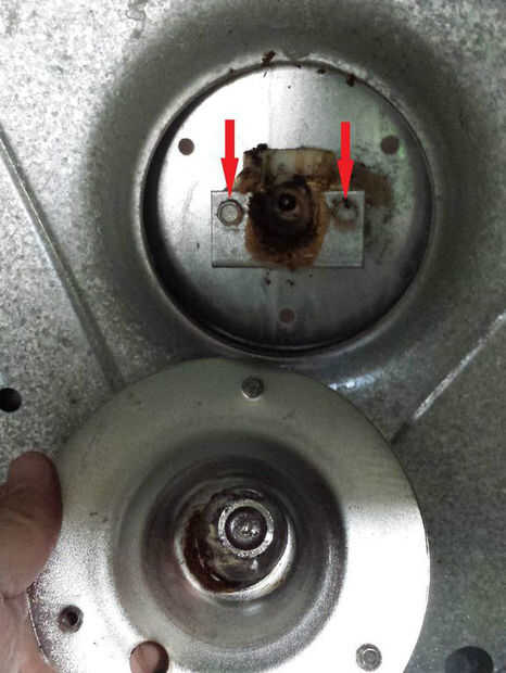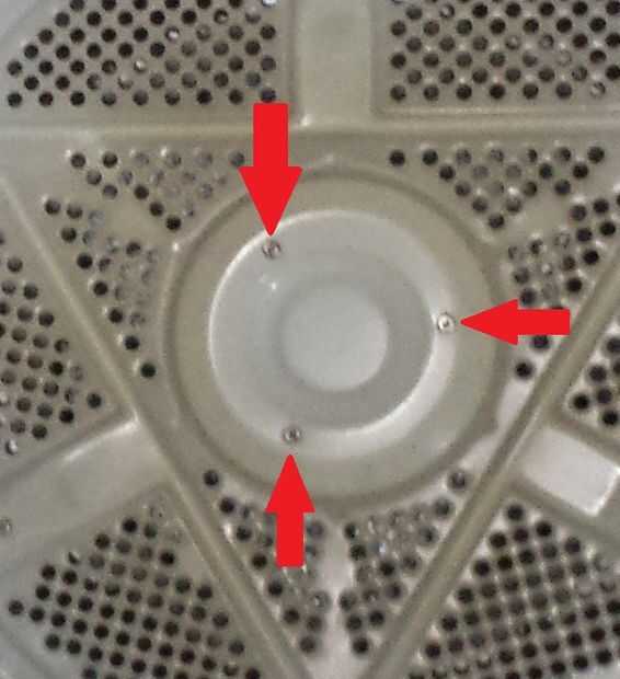 Una vez que la correa está apagado, puede quitar los tornillos de 3 centro desde el interior del tambor. Después de que lo hayas hecho el tambor debe caer bien.