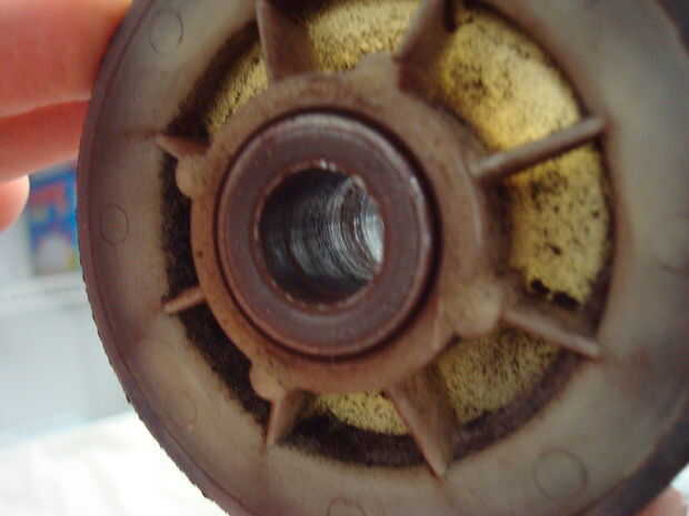 Limpie el eje con una toalla de papel húmeda y séquela bien. No queremos ningún moho allí.