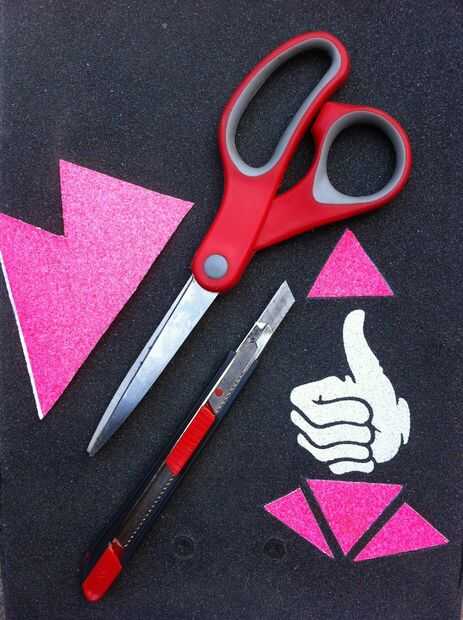 No sólo puede dejar la cinta del apretón agradable y clásico, pero también puede hacer su cinta de agarre creativo y único.  Hay un montón de maneras de personalizar tu cinta de agarre, se puede dibujar en la cinta de agarre con diferentes colores de los fabricantes, o usted puede venir para arriba con algunas ideas más creativas.  En este tutorial, corte la cinta original de agarre en la cubierta del patín de forma que quieren y reemplazado por cintas de agarre rosa.