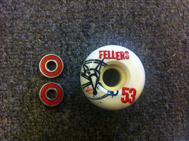 Es generalmente difícil de empuje los rodamientos de las ruedas, aquí es un Consejo para usted. Colocar un cojinete sobre el eje de la carretilla de patín y coloque una rueda justo después el rodamiento. Empuje la rueda hacia abajo, el rodamiento se instala fácilmente en la toma de las ruedas.