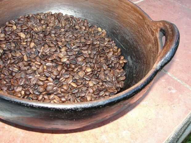 café. Probablemente te sorprenderías al saber que la mayoría de ecuatorianos no beben café "real". Así es que beben Nescafé instantáneo. Agradable ver a las grandes empresas en el trabajo en un país del tercer mundo. De los Estados Unidos de Starbucks amamos nuestro café. Así que tuvimos un amigo nos muestra todo acerca de picking a tostado de los granos de café. Aquí sólo mostraré cómo asar granos de café verdes en una cazuela de barro a fuego. Algunos de los antiguos aquí todavía hacerlo de esa manera y lo preparará para beber ya que comer cuy a la parrilla o cuy como se les llama aquí. Yum!