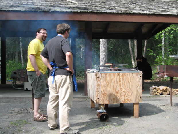 Usar leña de madera dura para construir un fuego, no del carbón de leña briquetas. Ha sido mi experiencia que durante las horas de 8 o menos cerdo lleva a cocinar, la briquetas acumulación demasiado ceniza, que frena la cocción.