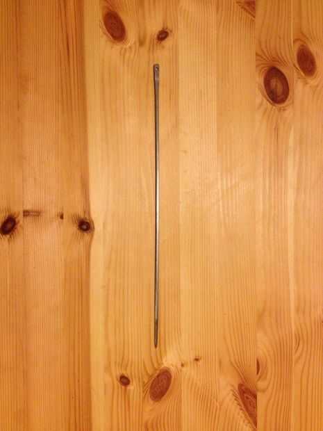 Una vez asado el cerdo que estaba sin mi fiel aguja atar demasiado grande que hice. Era bastante molesto empujar el cable achique a través de la piel de cerdo vientre engordado un par de alicates, o peor, con la mano como se puede ver en la segunda foto de arriba. La aguja gigante es el camino a seguir por que si tienes tiempo para hacer una y realmente ayuda en el paso de la costura.