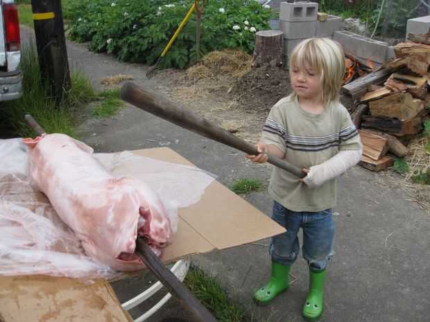 Una vez que el cerdo se cose para arriba, el paso final, que es totalmente opcional y probablemente no de saludable para el futuro de nuestro mundo, es que un niño pequeño ablandar la carne con un bate de béisbol.