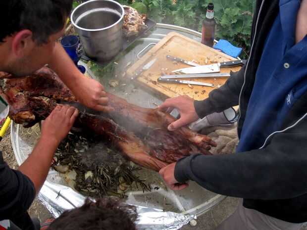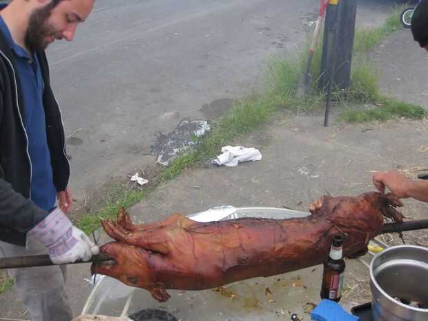 Un par de guantes de trabajo, algunas toallas limpias y un poco de paciencia limpio ayuda mucho con este paso y el siguiente. El cerdo está bien caliente, todo el mundo quiere comer y todo el Grupo estará observando todos tus movimientos, por lo que tienes que hacer las cosas bien.