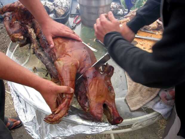 Usted debe dejarse con torso y tronco del animal. Esto contiene el vientre, lomo de la espalda, sabroso marmoleo de cuello y papada y el también delicioso, pero difícil a trabajar para la carne de costilla. Salvar el pellejo y comienzan a forjarse los lomos ya es más fácilmente accesible y comestible la carne que se desprenderá de esta sección. Después de eso, vaya después de todo lo que ha dejado de clasificar las piezas en ollas y platos de servir diferentes. La piel es buena para refrigerio - personas lo comerán por lo que no lo tire! Desnudo los huesos hacen un gran caldo. Perros como cartílago y despuntes extraño no es adecuado para servir. La mejor carne debe ir a platos para tus invitados.
