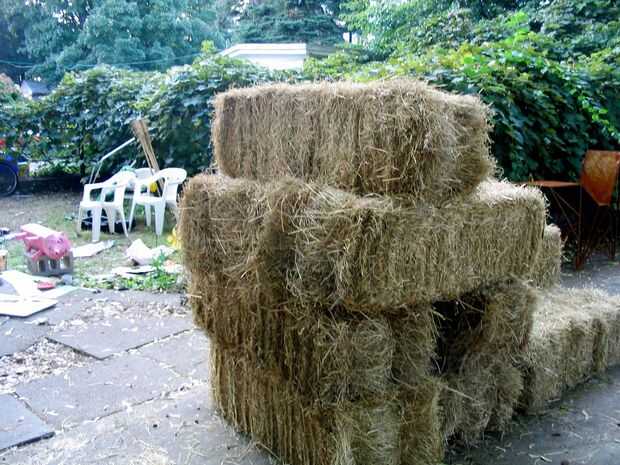 • balas de heno para sentarse debajo de unas vides de uva