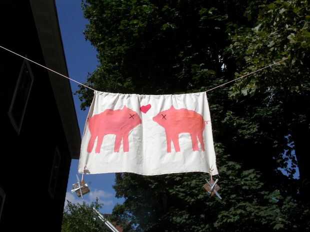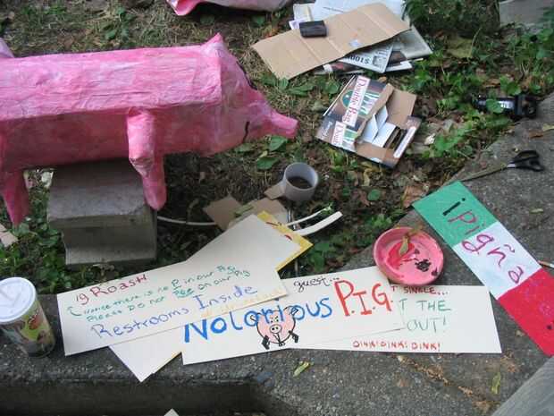 Una vez marcamos la casa que estuvimos viviendo en el tiempo con una gran pancarta de dos cerdos en él para que todo el mundo puede encontrar fácilmente el asado.