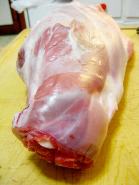 El asado puede ser cubierto por una membrana de tejido blanco duro. Usted puede recortar esta. No tan importante para una joven cabra ya que la carne de cabrito tiene un sabor más suave. Para mayores cabra, este tejido más difícil será infundir un fuerte sabor gamier para aflojar esta membrana, ponga los dedos debajo del tejido y ver si puede trabajar lejos de la carne y cortar de esa manera. Eliminar tanto como sea posible.