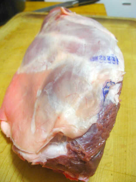 Recortar los depósitos extra grasas. Porque la cabra es un magro, puede utilizar estos depósitos de grasa para ayudar a infundir más grasa en la carne, insertándolas en las ranuras de corte en la carne, así que los reservamos para más adelante.