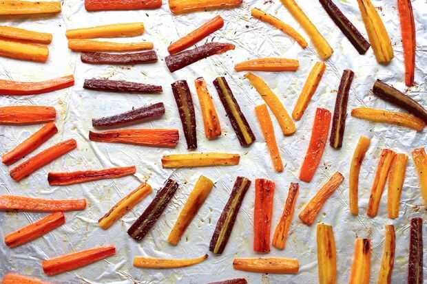 Pop las zanahorias en el horno precalentado 425 220 C de temperatura. Las zanahorias se llevará en cualquier lugar de 20-30 minutos para cocinar.