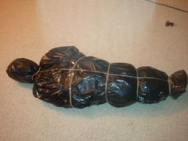 2.) ahora que hemos cubierto iluminación, permite la decoración de la cubierta de la casa. Para crear un porche espeluznante para truco o tratamiento, uso ropa vieja y almohadas en forma de cuerpos de relleno en una bolsa de basura y conducto pegado o atado para crear "cadáveres" en bolsas improvisadas. Utilizar bolsas de basura blancas y sangre falsa para hacerlos sangrar. Añadir charcos de sangre en una esquina y allí les depresión. A continuación añadir telarañas y jack linternas o al gusto.