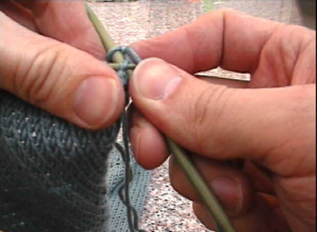 Insertar la aguja izquierda por el frente de 1 punto en la aguja derecha.