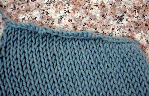 Cuando sólo una puntada en la aguja derecha, simplemente cortar el su hilado, dejando unas 5 pulgadas de cola para tirar a través de la apertura de esa última puntada y dibujarlo apretado. Usted lo dejó con una ventaja agradable, acabada que se ve algo como esto.