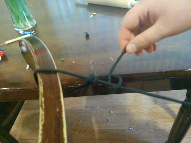 venga a través de puesto alrededor de la cuerda tensa y tire firmemente