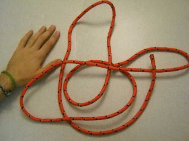 -Cuerda (la longitud de la cuerda variará dependiendo del diámetro de la cuerda y el tamaño de la woggle que están haciendo). Para este ejemplo usé 4 pies de cuerda para hacer un gran woggle.