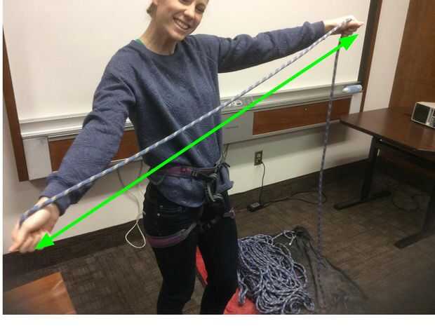 • Tramo 3-4 pies de la cuerda en sus manos.