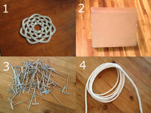 Los pasadores de tanto sostienen el modelo en su lugar como servir de algo para mantener la cuerda en lugar de una vez comenzamos a atar el nudo.