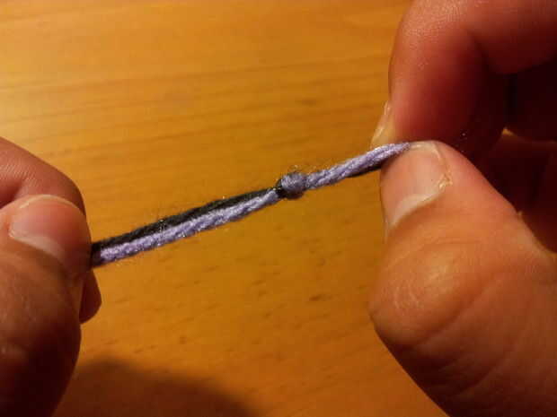 a continuación, unir las dos cadenas y atarlos juntos en un nudo normal (nudo).