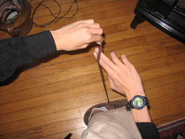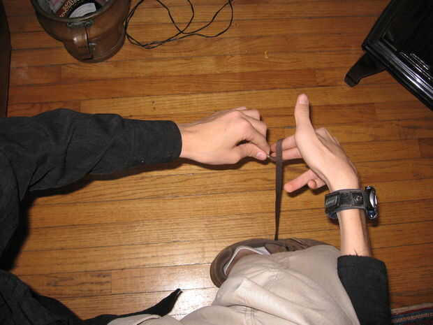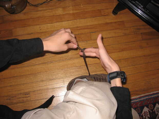 Tire de un lado de su cordón con fuerza y luego seguir las imágenes.