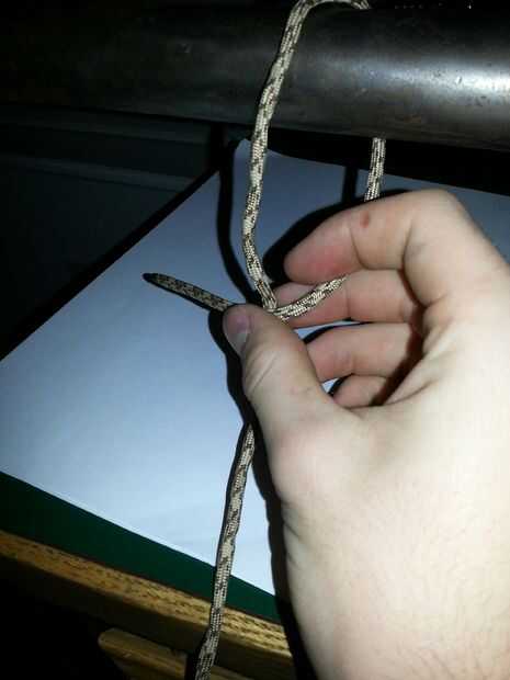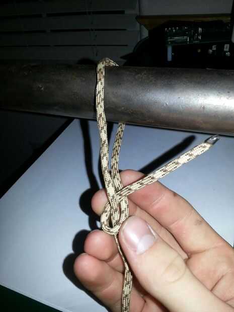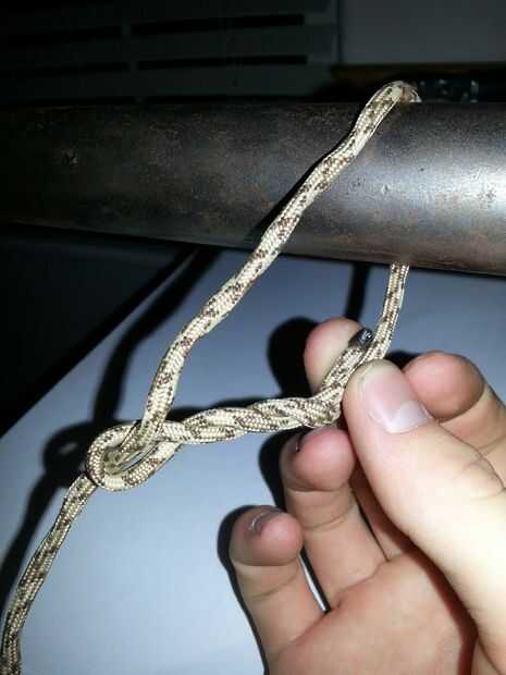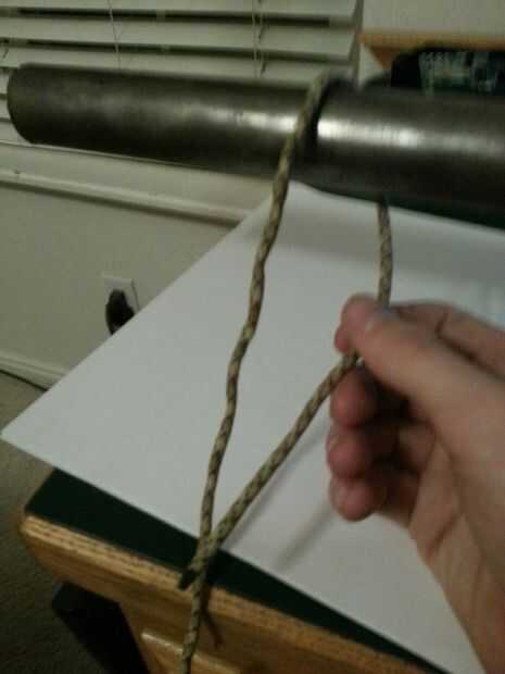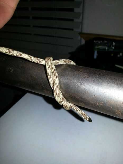 El Buntline enganche se utiliza para estabilizar los artículos, porque aprieta con espasmos y temblores. No puede ser atado bajo carga, como se atascará si bajo una carga pesada.Paso 1:Encontrar el elemento que está atando el nudo alrededor y acabar