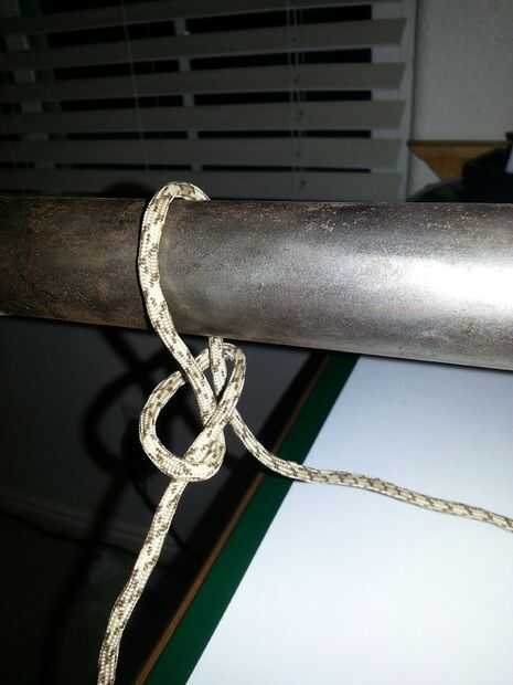 El Buntline enganche se utiliza para estabilizar los artículos, porque aprieta con espasmos y temblores. No puede ser atado bajo carga, como se atascará si bajo una carga pesada.Paso 1:Encontrar el elemento que está atando el nudo alrededor y acabar