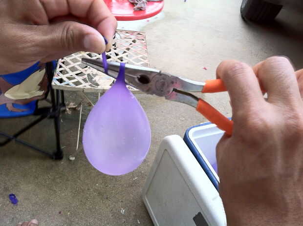 Envolver el globo de agua alrededor de los alicates.