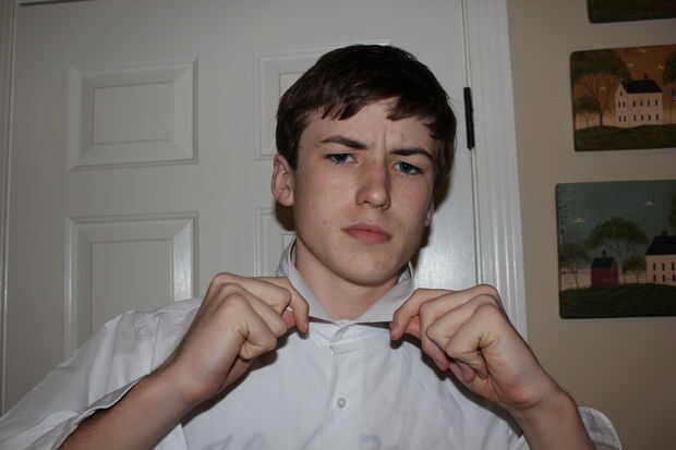 Asegúrese de que su cuello está derecho y el botón superior es abotonado.