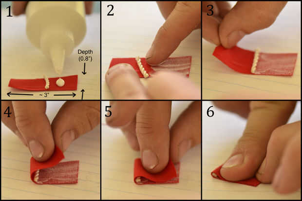 Doblar la tela sobre el cordón, pegamento, y pegar a la columna vertebral en ambos extremos.