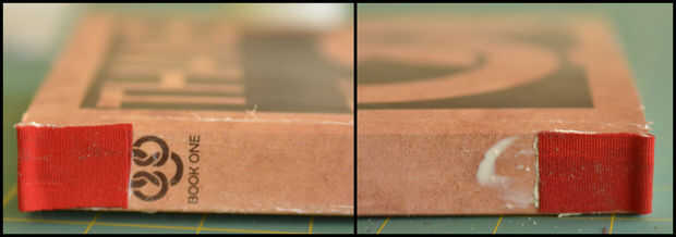 EDICIÓN: kewpiedoll99 fue suficiente para señalar que las vendas FAKE/falso (como éstos) no tienen ningún propósito práctico, pero firma obligado libros a menudo han cosido vendas que aumentan la integridad estructural del libro. Aquí está un tutorial fantástico que encontró en las vendas de costura de libros de autor obligado: