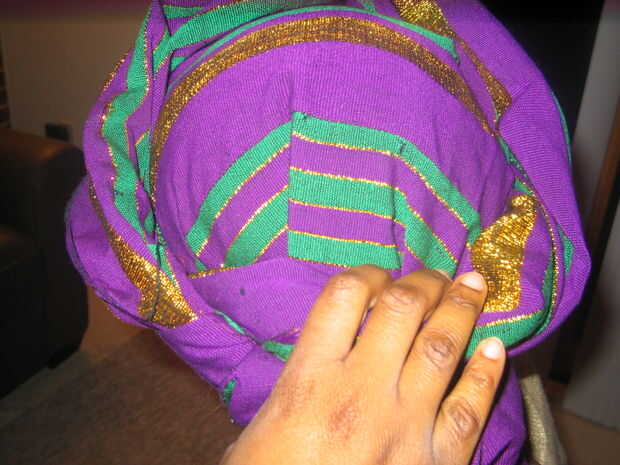 El gele puede estar vinculada con diferentes texturas de material del paño, pero generalmente está cansado con un aso oke.
