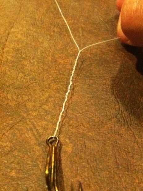 Ahora, sujetando el extremo suelto contra la línea de pie, gire el gancho o señuelo rotaciones completas de 7-10.