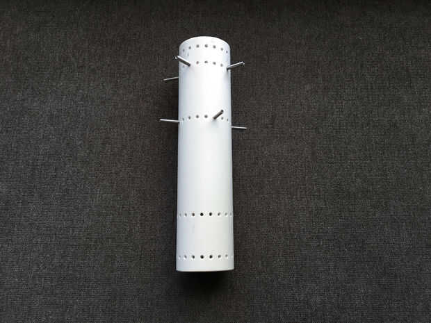 Cartón es una opción muy flexible como puede hacerlo cualquier diámetro deseado. Puede ser difícil conseguir perfectamente cilíndrico, pero que no es tan importante como parece. Sólo enrolla algunos cartulina de una vieja caja de cereal o cualquier otro tipo de cartón. Pernos resistentes son necesarios. Te recomiendo T-pins que se pueden conseguir en cualquier tienda de suministros de oficina.