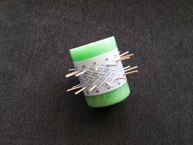 Tallarines de la piscina un gran trabajan porque palillos pueden utilizarse para pins y pueden colocarse en cualquier lugar. Pegan con un número limitado de diámetros, lo cual está bien, pero puede tomar más tiempo para apretar el nudo si usted está transfiriendo a un objeto mucho más pequeño.