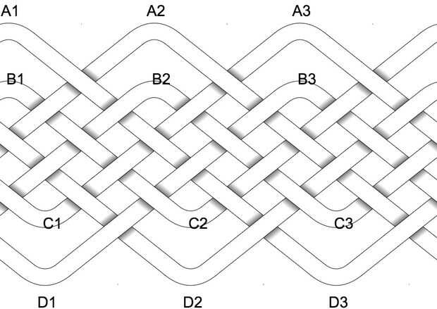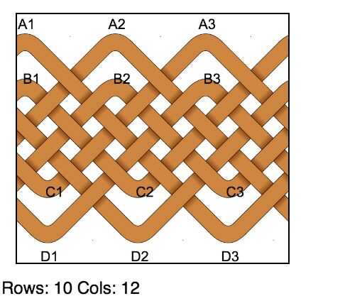 El patrón de nudo fue generado con el software que he escrito llamado la máquina de red avanzada. Nudo tyers en todo el mundo usa para generar instrucciones para atar estos tipos de nudos (cabeza de turco y nudos de como cabeza de Turco). La herramienta fue diseñada originalmente para que yo usar, por lo que la interfaz deja mucho que desear, pero puede hacer mucho. Un número infinito de nudos se puede crear con esta herramienta, y usando los siguientes pasos como guía, puede crear un mandril para cabeza de cualquier turco o nudo de como cabeza de Turco. Usted puede utilizarlo usted mismo aquí: http://freakinsweetapps.com/knots/knotgrid/advanced.html