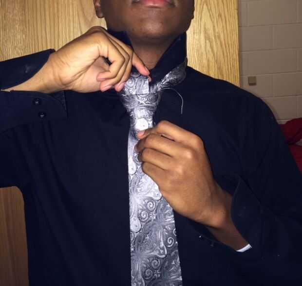 Si usted está familiarizado con los nudos windsor entonces usted sabe lo que está sucediendo aquí, pero si no, entonces usted necesita poner el extremo estrecho hacia abajo a través del frente en el bucle que acaba de hacer por ir en la parte frontal en el paso 8.