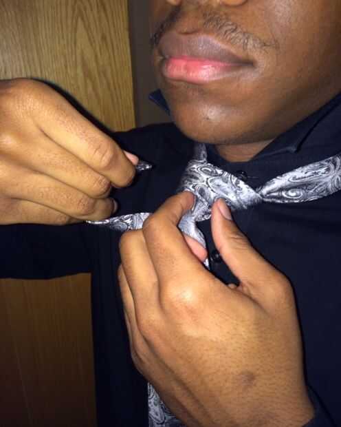 Una vez que usted gire el extremo angosto en el extremo más ancho, entonces empiezas a poner el extremo estrecho por arriba y sobre el nudo. Vienen por detrás y empezar a arquear hacia el centro