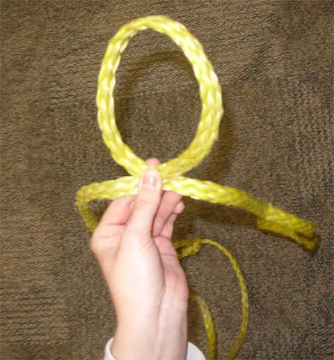 Asegurar el lazo con la mano izquierda, donde cruza la cuerda.