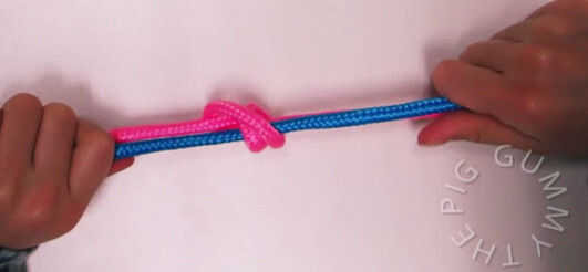 Tire de la cuerda rosa a través de lazos para apretarlo