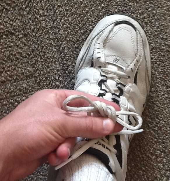 Para asegurar que el cordón no se deshizo, se recomienda hacer un segundo nudo con los lazos creados en el paso anterior.  Esto se hace atravesando un lazo sobre la otra y envuelve una vez alrededor de otro lazo.  Como se ve en la foto, cada bucle es tratada como una sola cadena inseparable para este paso.  Tirando de los lazos para ajustar el cordón completa el proceso.