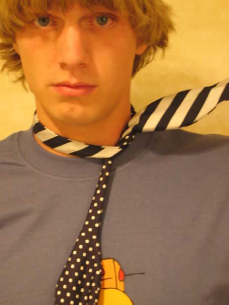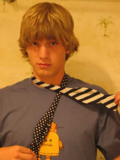 Para comenzar, por causa de claridades, en lugar de decir el lado derecho y lado izquierdo de la pajarita, que fácilmente podría ser confuso, voy a referirme a las diferentes caras de la pajarita como "el rayas" y "la polca punteada." Elegir este lazo por esa razón y si tienes problemas de inteligencia, salir y una pajarita con dos partes de diferente color o con diferentes patrones como la mía. Debe hacer mucho más fácil.