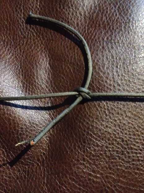 este nudo se utiliza para unir dos cuerdas de diferentes diámetros. Este nudo es más fuerte que el nudo de hoja curvaPaso 1: Hacer un brillante en el más grande de los dos cables a unir.Paso 2: Meta la segunda línea y tuck para arriba a través de la